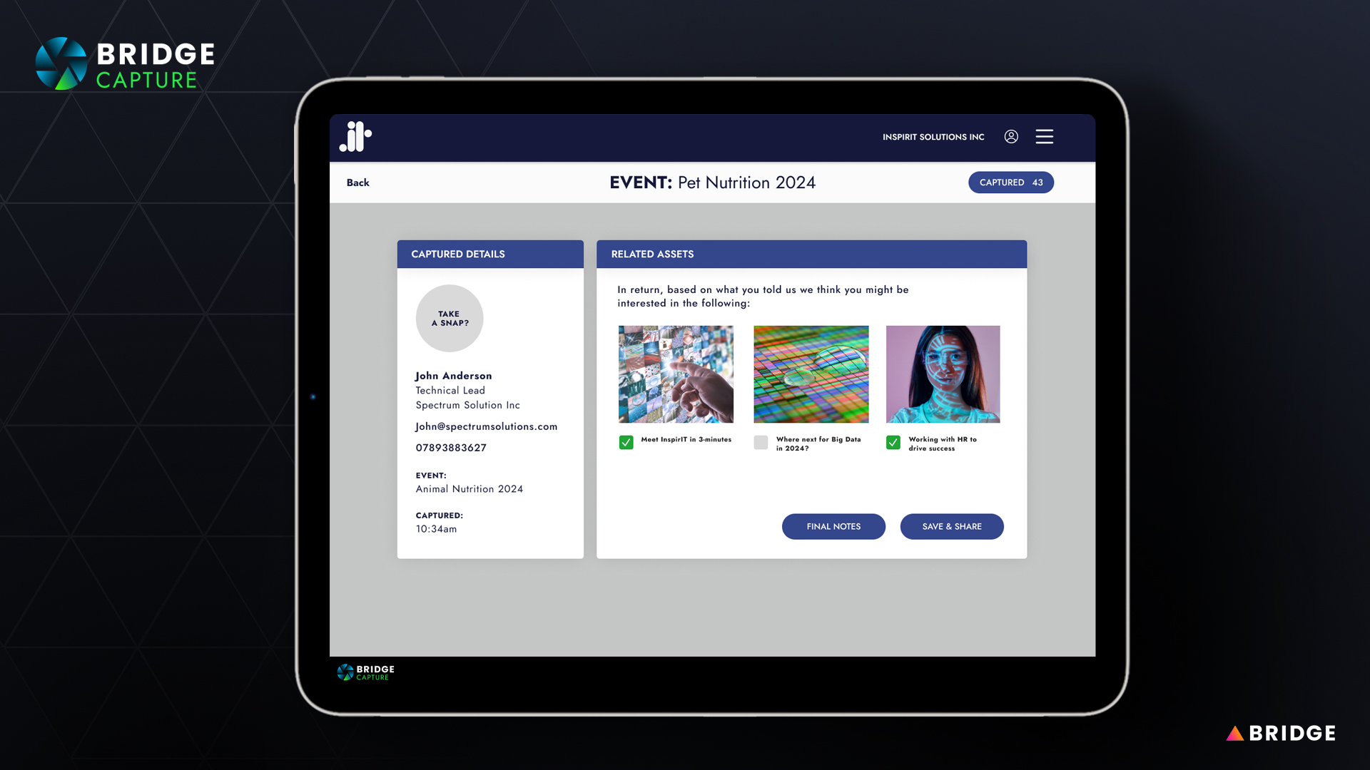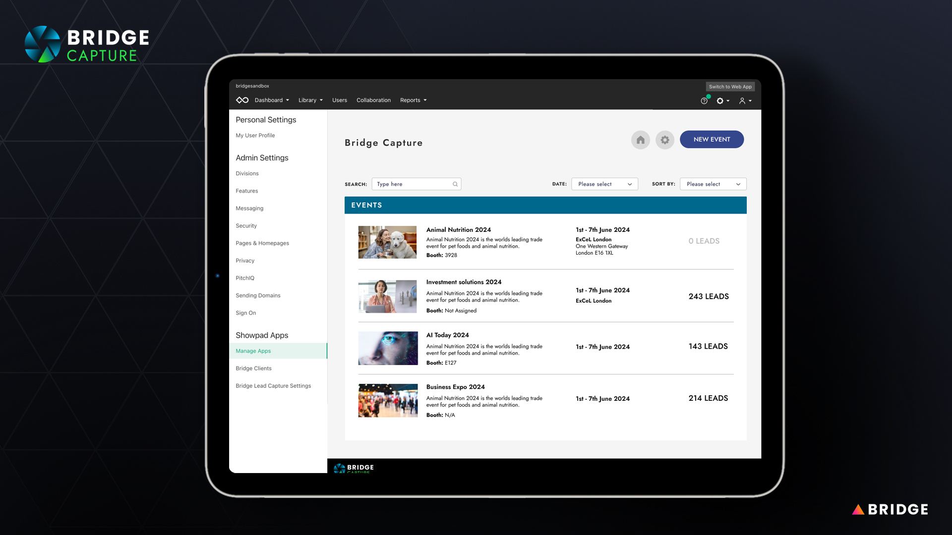 Wave goodbye to costly lead capture devices or needing to spend hours manually inputting data into a spreadsheet from a pile of dog-eared business cards! Introducing Bridge Capture, a game changing solution for event organisers to better manage the lead capture process at trade shows and live events.