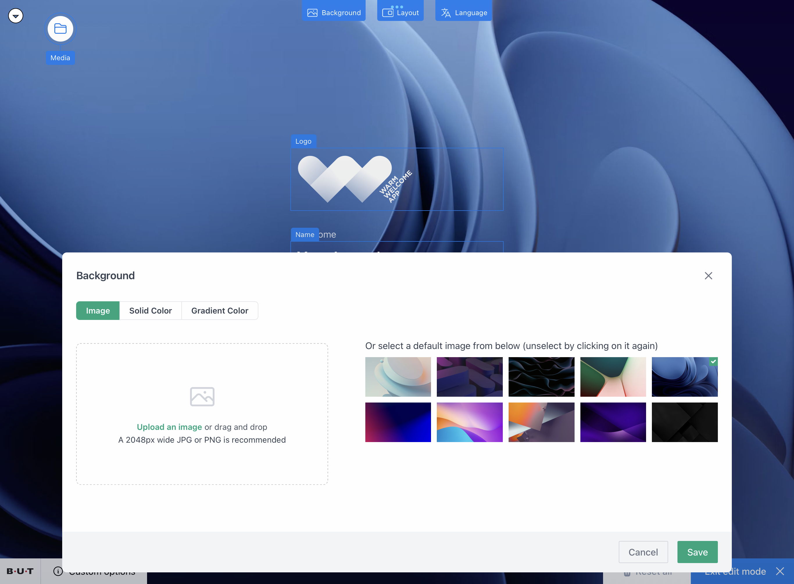 Choose from our enticing array of default backgrounds or make a lasting statement by uploading your own backdrop. Elevate your brand presence by customizing the colors of the main panel and all texts, ensuring every detail aligns seamlessly with your brand identity.