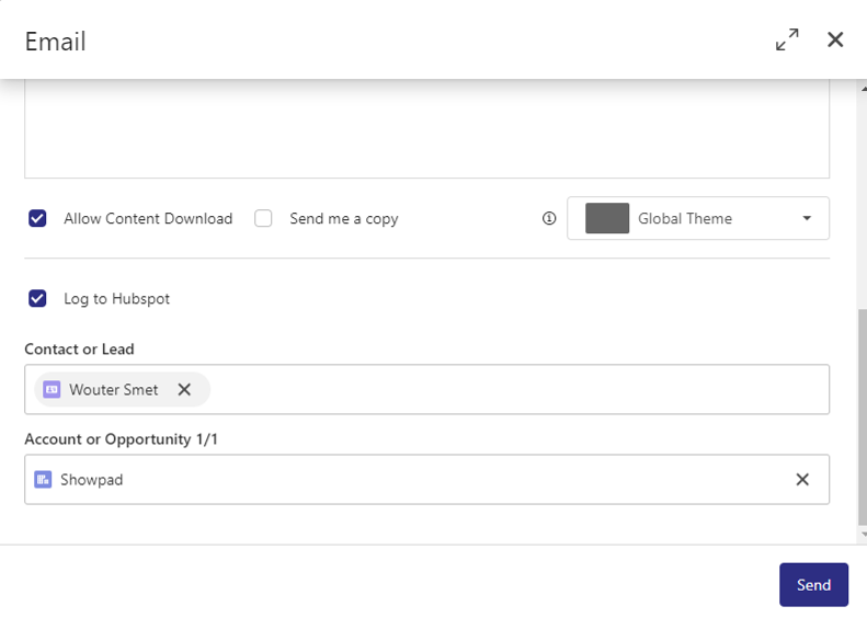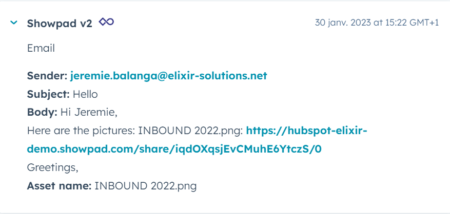 This integration reduces switching back and forth between HubSpot and Showpad. This is achieved by automatically adding share and view activity of Showpad content on a HubSpot contact's timeline.
