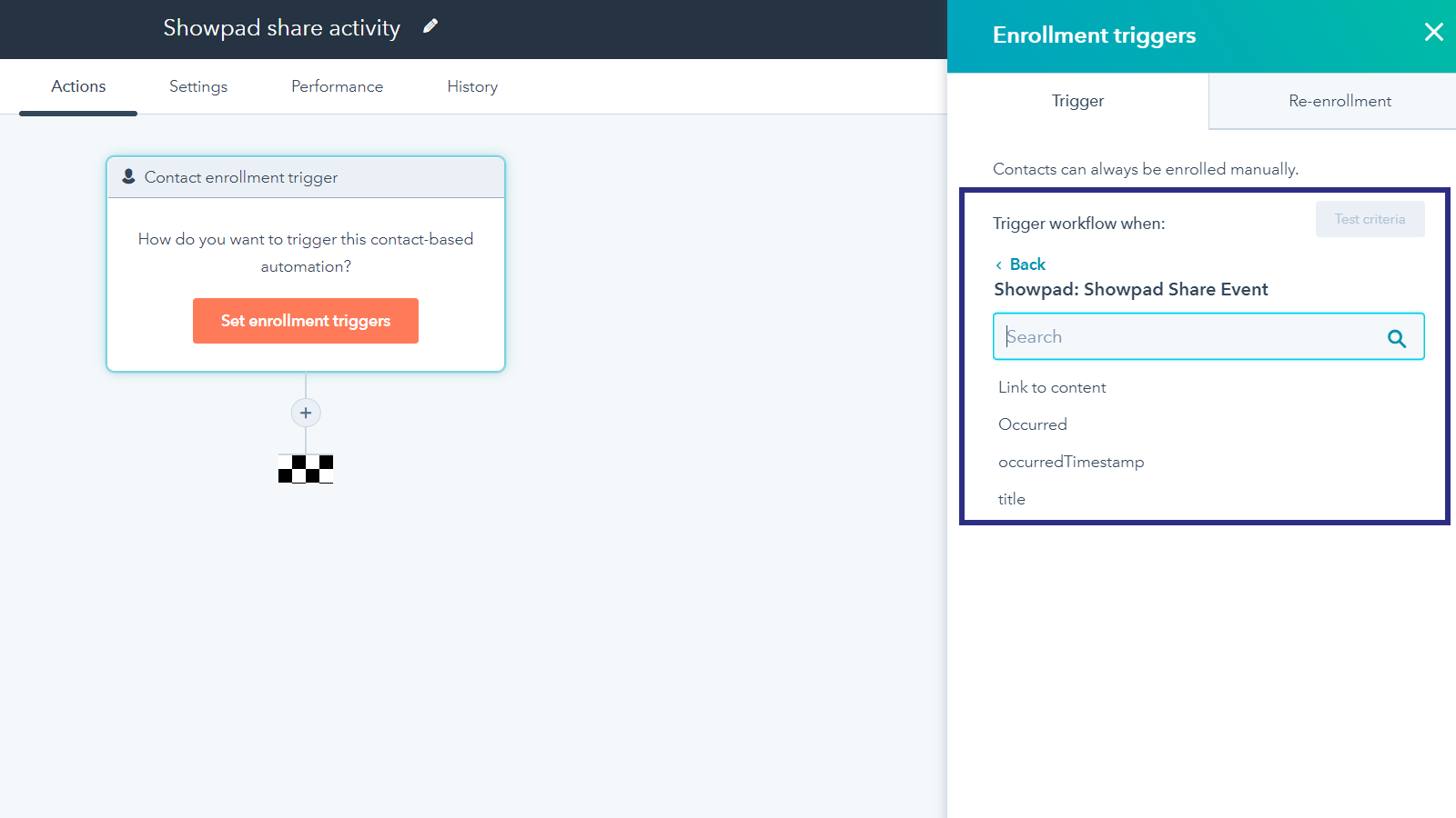The Showpad activity that is added to a HubSpot contact's timeline can be used as an enrollment trigger for workflows or a filter when making lists. This provides another layer that can be used for segmenting audiences.